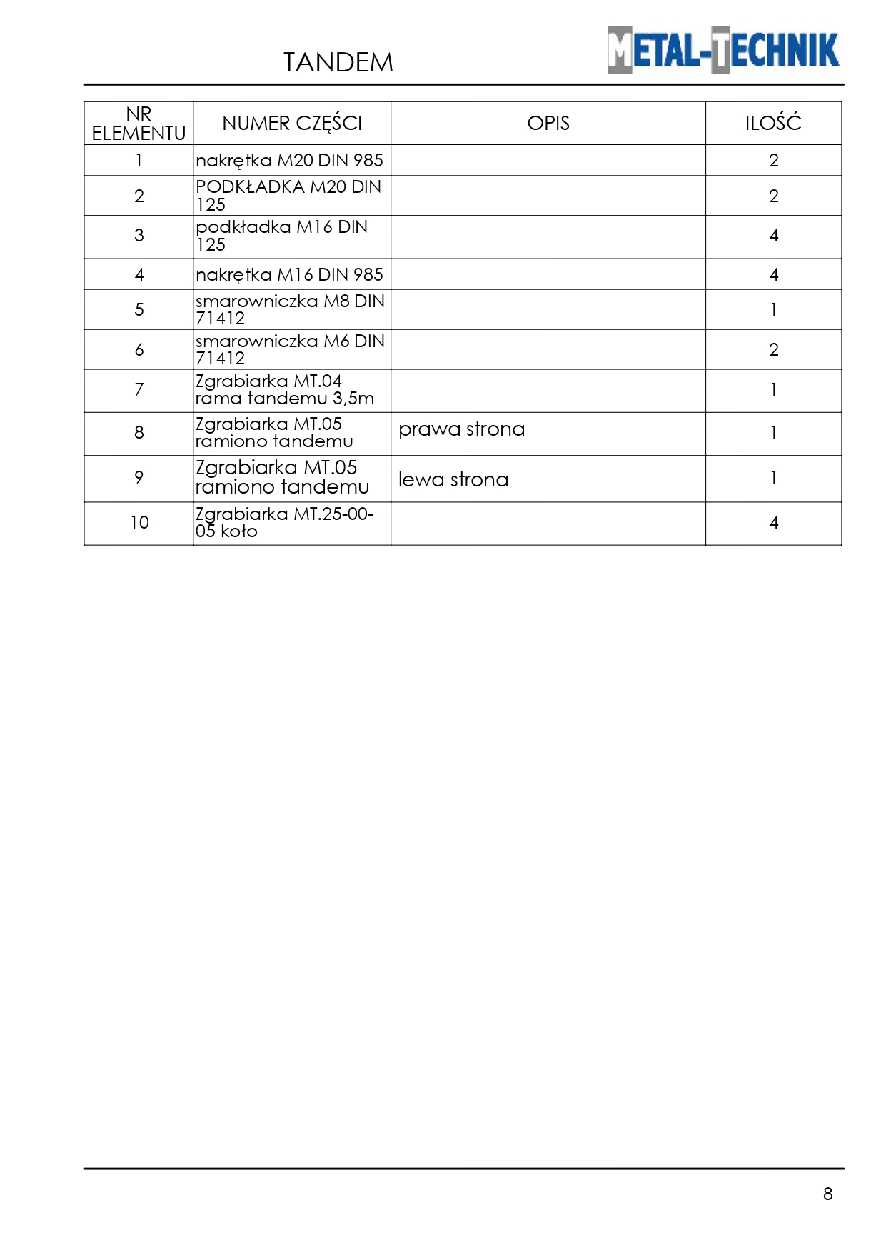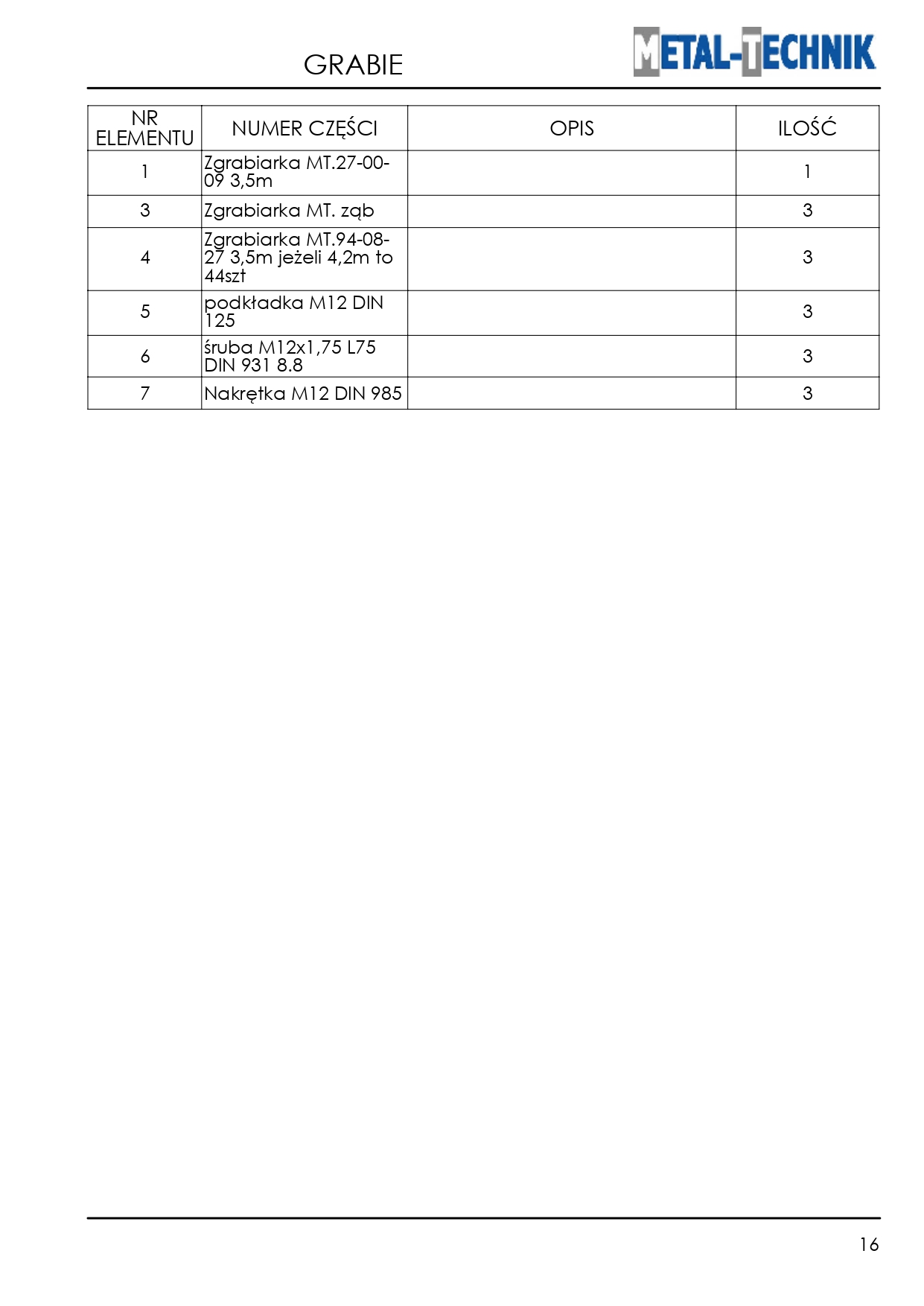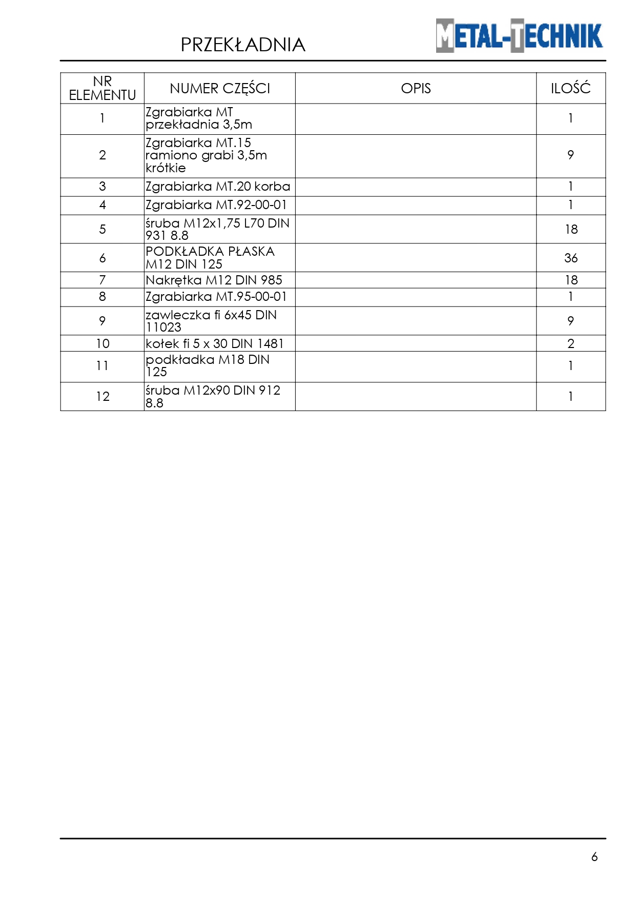Strona główna » Pozostałe maszyny i akcesoria » Zgrabiarka karuzelowa MT » Części zamienne - Metal-Technik Zgrabiarka karuzelowa