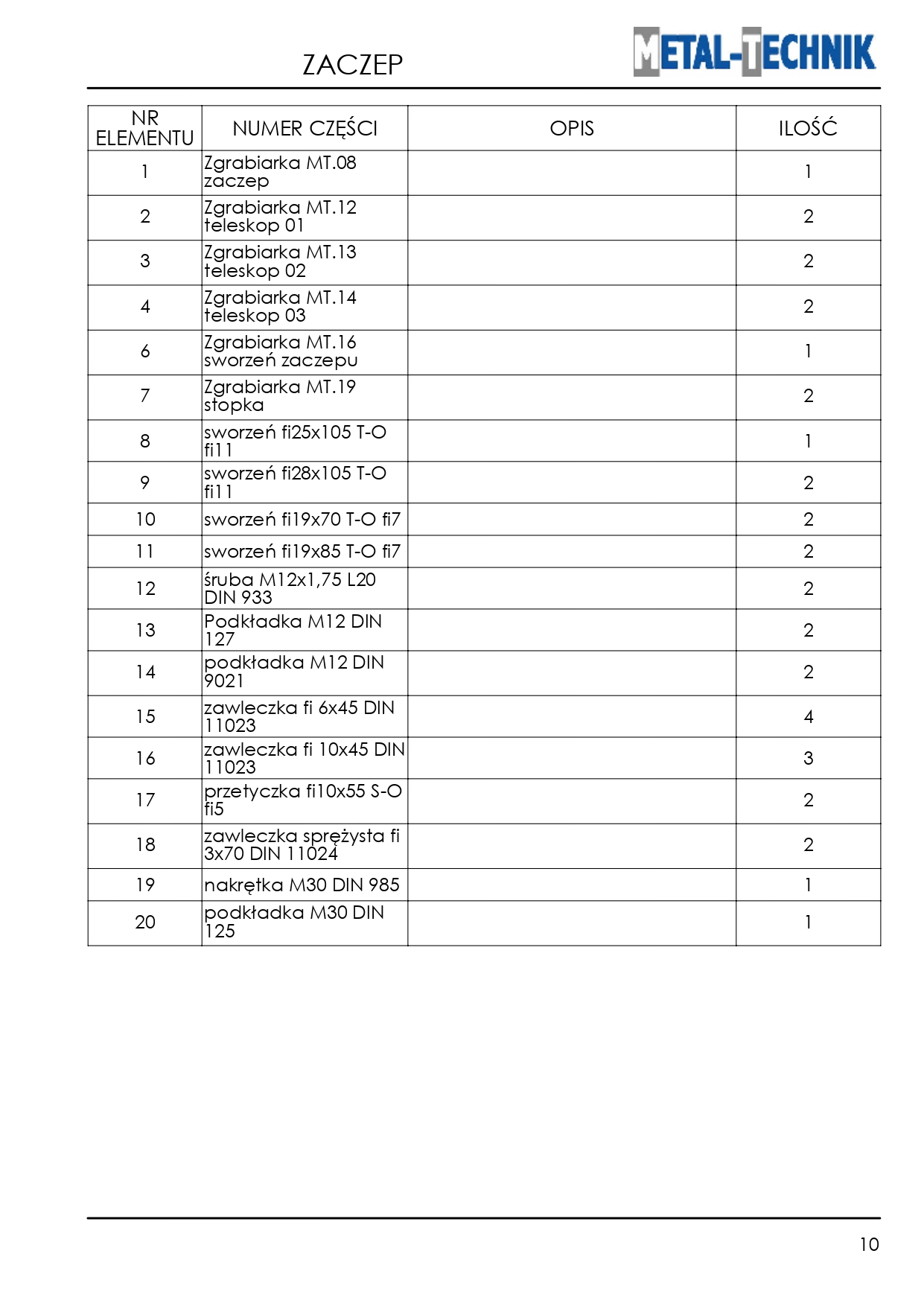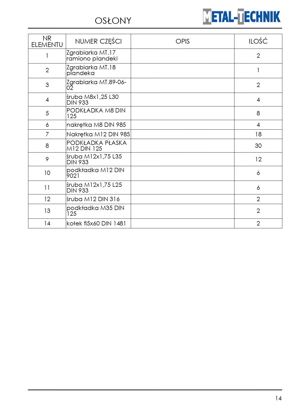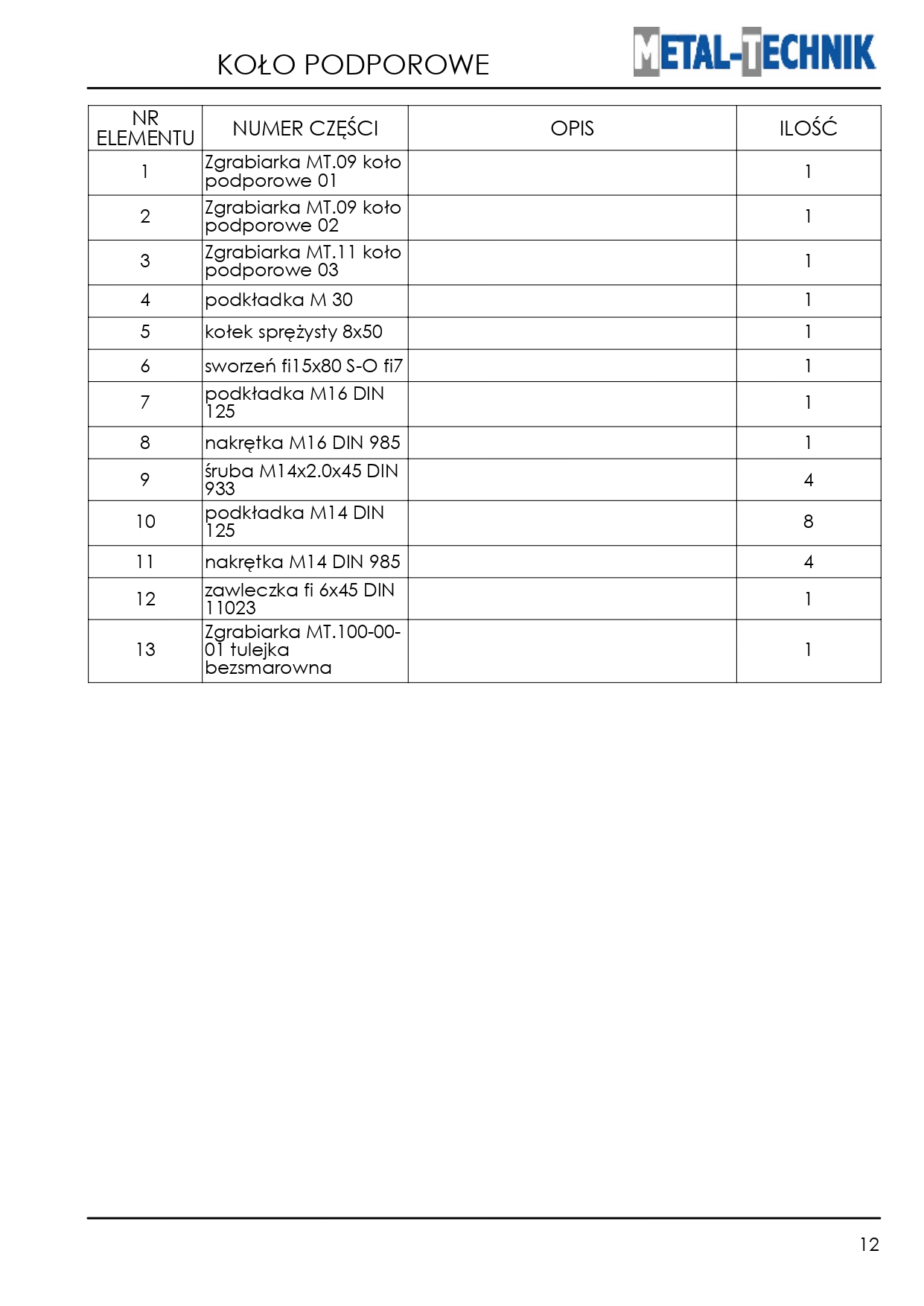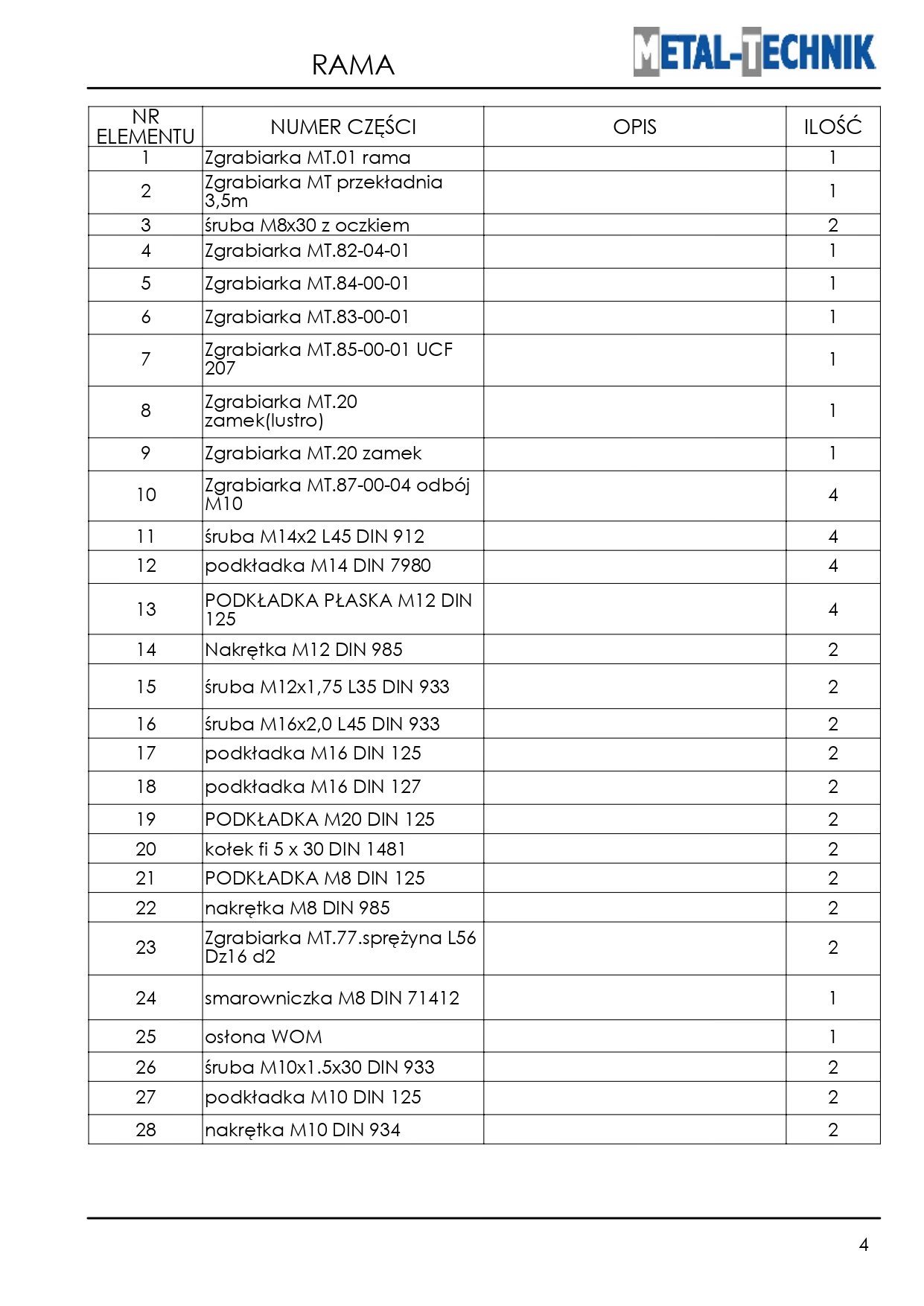 Strona główna » Pozostałe maszyny i akcesoria » Zgrabiarka karuzelowa MT » Części zamienne - Metal-Technik Zgrabiarka karuzelowa