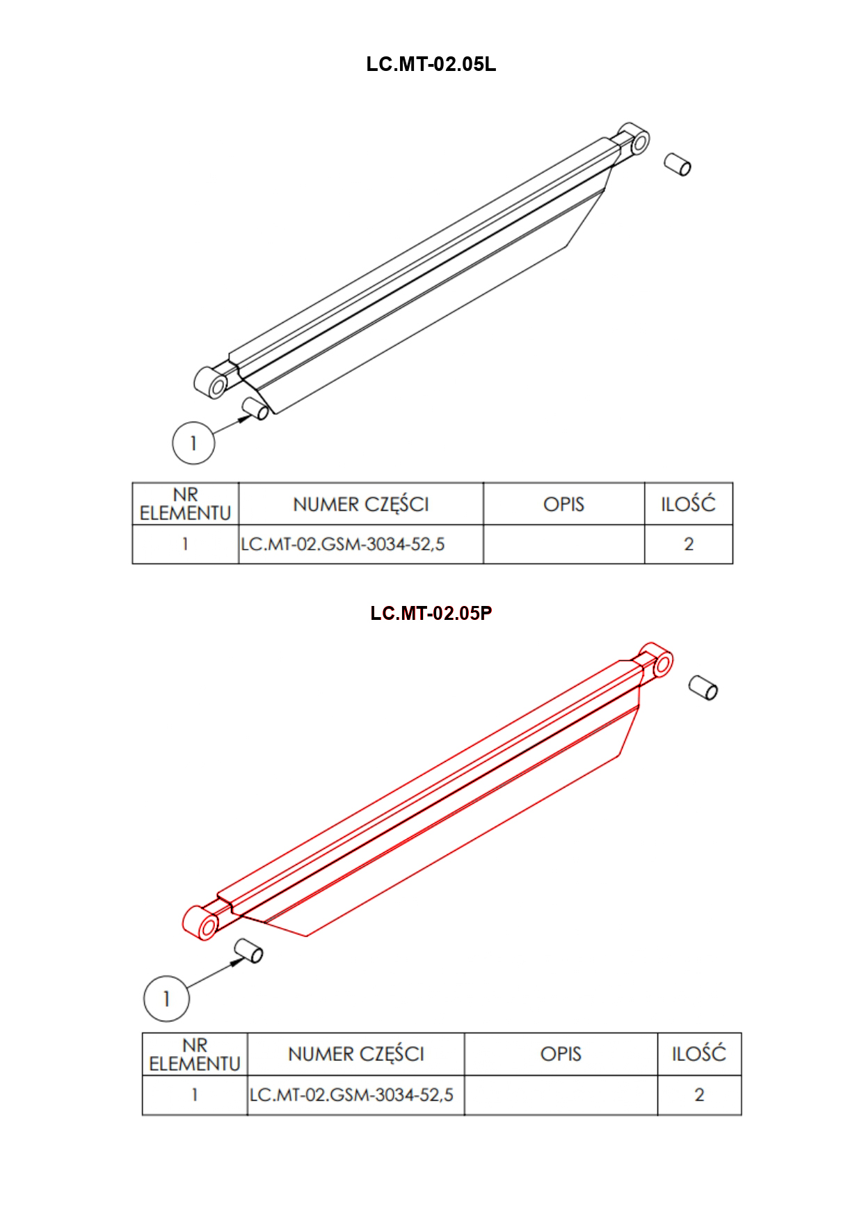 - Każda część posiada przyporządkowany numer znajdujący się na schemacie.